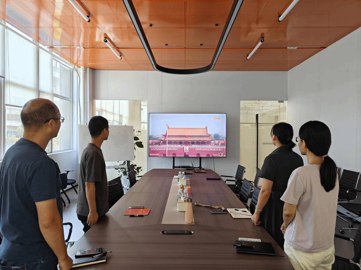 当日上午,工程研究中心会议室座无虚席,气氛庄重而热烈。随着阅兵式正式开始,屏幕上步伐铿锵、气势如虹的受阅方队,以及各类彰显国家实力与科技水平的先进装备逐一展现,让在场每一位观看者心潮澎湃、倍感震撼。大家全神贯注,仿佛身临其境,不时为受阅官兵的昂扬斗志、威武军容和国防建设的辉煌成就爆发出阵阵掌声。