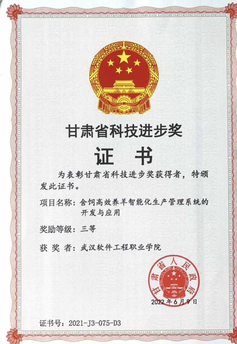2022年6月我校与华中农业大学合作的《舍饲高效养羊关键技术创新与转化推广》项目获甘肃省科技进步三等奖,解决100余家企业数字化技术现场应用难点。